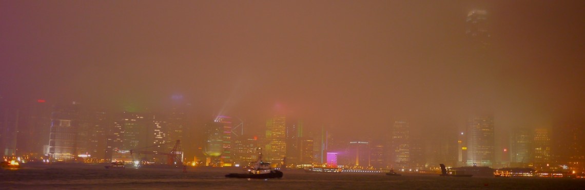 …before joining Sean the New Yorker, Jonas the Hamburger (see previous post), and Augustine the Vancouverite for a visit to Kowloon to watch the highly anticipated nightly light show. We couldn’t actually see the lights because of the fog, but the music was exhilarating.