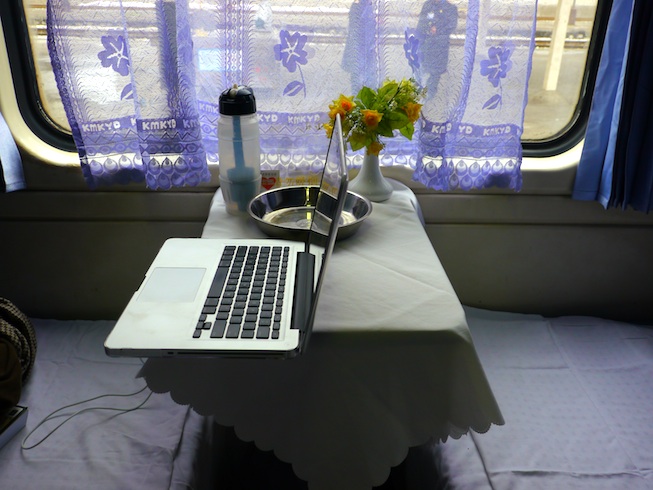 It was beautiful. A tablecloth on a little table, perfect for my laptop. A vase. Curtains. And I had the entire cabin to myself for the first seven hours. The problem with the ride was it reinvigorated my desire to see the Chinese countryside by train. It was dark for half the journey, but what scenery I saw differed greatly from the industrial landscape of the eastern provinces.