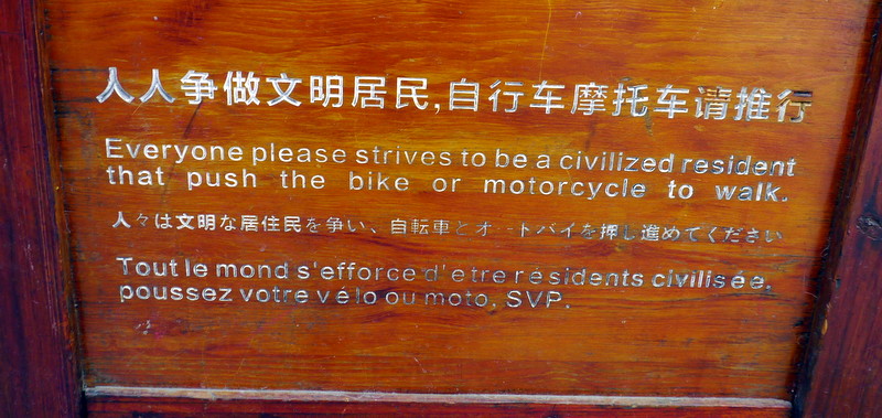 That’s right, it’s Main Street. Except instead of a typical small U.S. town one-hundred-plus years ago, it’s a Chinese town one-hundred or two-hundred years ago. And yes, like Disneyland, it may not be as authentic as other cities’ old towns. And yes, the streets are filled with tourists. And yes, the food is more expensive and not as good as outside the stone walls. But unlike a real town of yesteryear, it’s clean. The streets are continuously swept. The buildings are freshly painted. And the only poverty is you, when you leave.