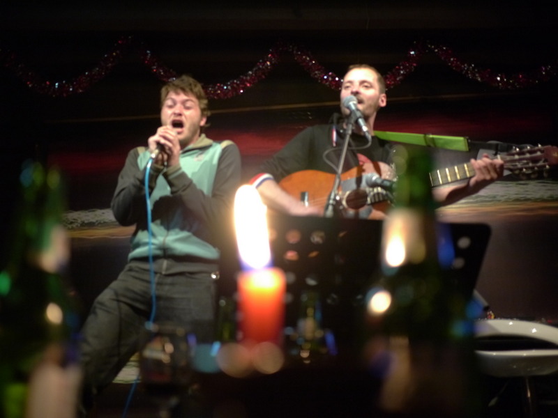 The first night we ate at a mediocre restaurant, at which two of our party (Maya and Ezra) wisely decided to leave and eat elsewhere. During dinner we survivors (Ryo from Japan, Marieke from Holland, and myself) noticed an unusual sound coming from downstairs. Dear god, please no, not…karaoke? Leaving the restaurant we were surprised to find that no, this was the restaurant’s singer-guitarist.