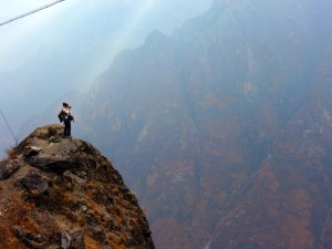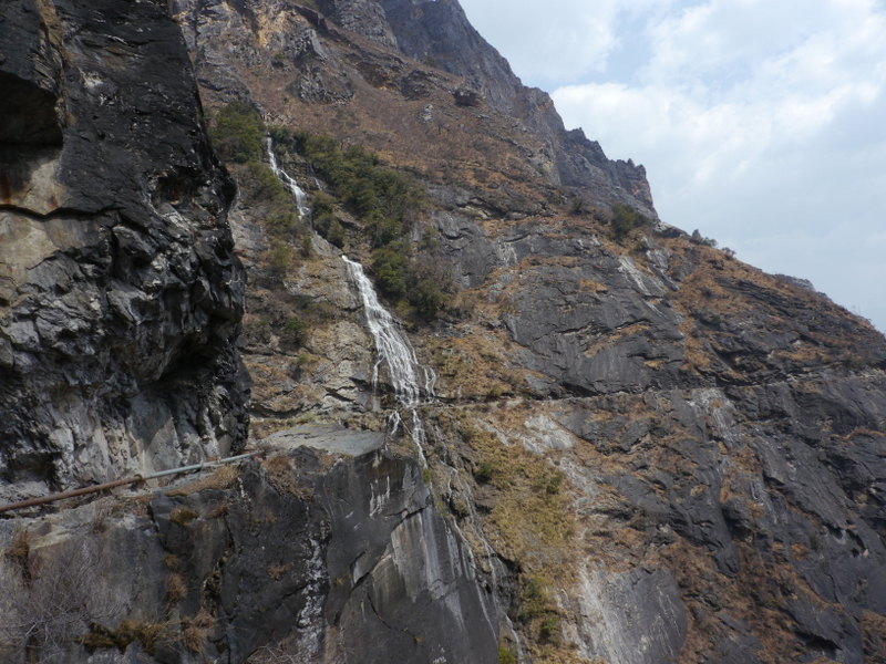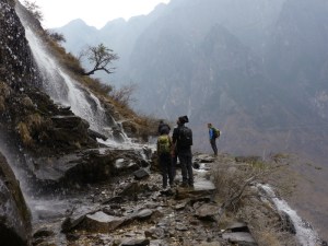 The biggest challenge of the day was a waterfall. Not a huge waterfall, but one that flowed directly across the rocky (and now slippery) path overlooking a bottomless cliff.
