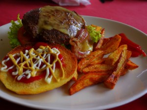 Ezra, who had arrived in Shangri-La the day before, took us to N’s Kitchen to enjoy the best burger in China. The burger cost more than our lodging, but it was worth it. It was a yakburger, and my first yak meal.