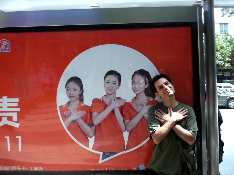 Of those passengers, we had encountered three previously on our travels. There was a couple from Israel whom Benny and Olga knew and an Englishwoman who had stayed at Upland in Kunming. Our good fortune: the Englishwoman had already contacted the hostel in Chengdu and arranged for an airport pickup. Landing in Chengdu, she got a thrill out of seeing a driver holding up a sign with the name “Emma” on it. Which is how we learned her name, and which I should have known because Emma is (I assume) the only name English people are legally allowed to give their daughters.