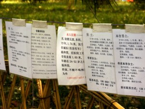 I later found out these were personal ads, plastered all over the fences. Sort of the eHarmony of China. It may speak to the cultural differences of the West and East that I couldn’t distinguish between people mourning the dead and those looking for a mate. Of course, one time in Dali, we wandered past a courtyard and were invited to have some food and join what looked like a cross between a musical performance and a celebration, only to find it was a funeral.