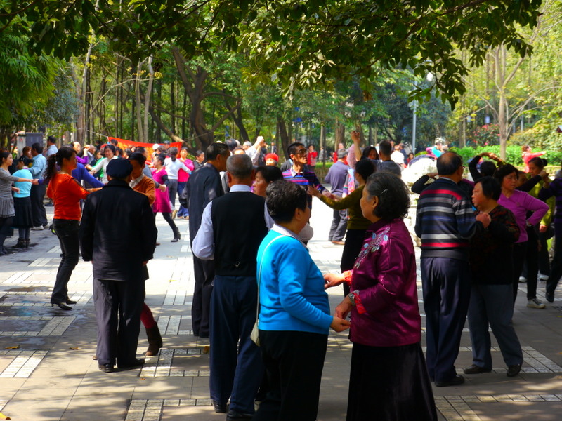 The first thing I noticed was the music. If you think young people play their music loud, take a trip to People’s Park in Chengdu. The soft, soothing, traditional Chinese songs were blaring out of PA systems so loud even the deafest of listeners could enjoy. PA’s were set up every few yards, competing with each other, each one surrounded by groups of citizens practicing their synchronized dancing. I had seen synchronized dancing all around China but never so many different groups practicing simultaneously to different songs, to provide the passing spectator with a level of orchestral discordance usually associated with “A Day in the Life”.