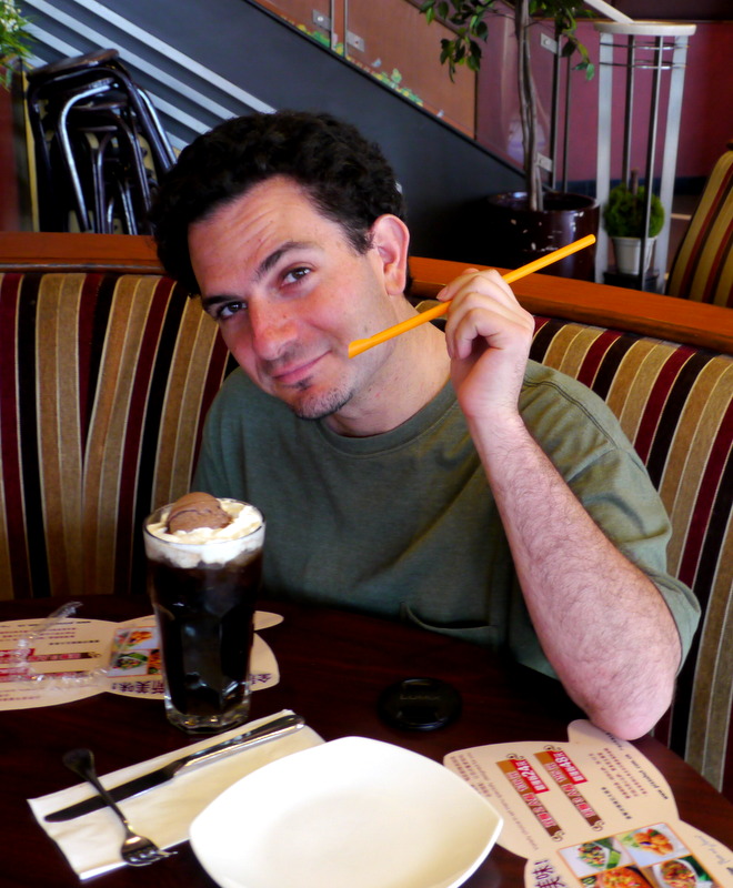 Pizza Hut is ubiquitous in China. I must have passed by a hundred without the desire to go inside, but today it called out to me. Pizza Hut in China is like Pizza Hut in the US in that they both serve pizza. But here in China, Pizza Hut here is a fancy two-story restaurant, that serves everything Western under the sun. The pizza wasn’t bad, but real treat was the “Black Angel”, which to my delight turned out to be a coca-cola float. Num num!