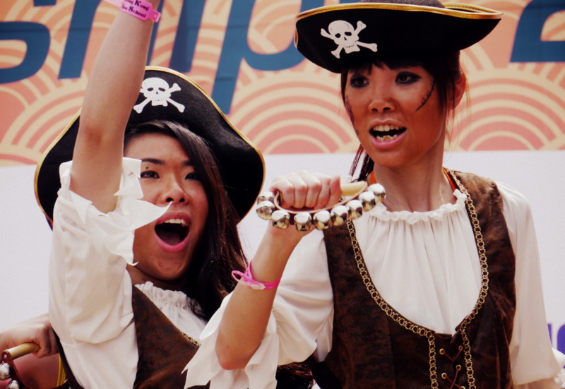 I don’t have any pictures of the races’ scene-stealers, a women’s Dragon Boat team from Latin America called the Latin Dragons. They all wore wigs, blues and yellows and reds, and big sunglasses. And kept singing a five-word song that captured everyone hearts. Or if not their hearts, dug holes into their brains. It went something like: