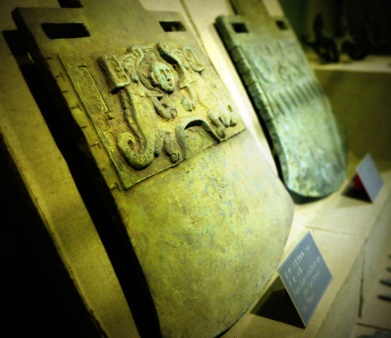 At the Yinxu ruins in Anyang, I visit the underground tomb of Lady Fu Hao, wife of King Wu Ding. Fu Hao was unusual in that she was a high-ranking military general—the most powerful of her day—as well as a priestess. She had command of up to 13,000 men at one point. In her tomb stands the solid bronze blade of her axe, an axe I would not be able to lift, let alone wield. The Shang’s mastery of bronze weapons ensured the Shang would dominate other tribes of the region for centuries.